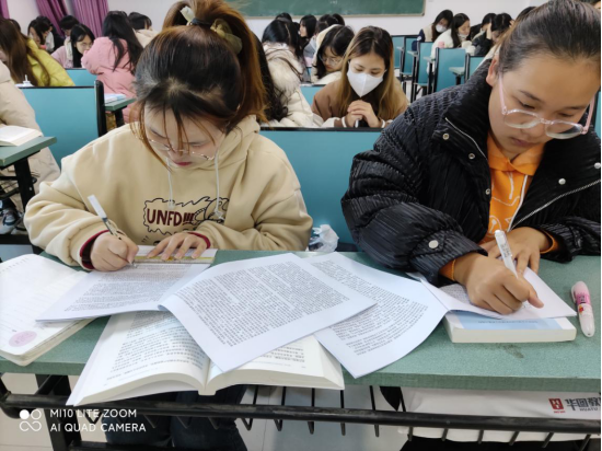 12月8日、12月10日,刘慧老师分别在汉语言专业和计科专业学生课堂上宣讲党的十九届六中全会精神,将《中共中央关于党的百年奋斗重大成就和历史经验的决议》原文带进课堂,指导学生读原文、学理论,引导学生了解十九届六中全会的重要精神内容,激励青年学生把自身命运同祖国需要紧密联系起来。