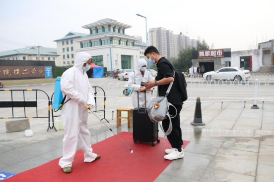 3月12日一大早,各科室抽调人员加入系(部)教师防疫志愿者队伍,为到校学生消毒,测量体温,检查健康卡、行程卡、核酸报告,用摆渡车为学生托运行李,对食堂、教室、学生寝室等进行大扫除,全面消杀,开窗通气……全方位为学生服好务,筑牢安全防线,确保学生进校安全。