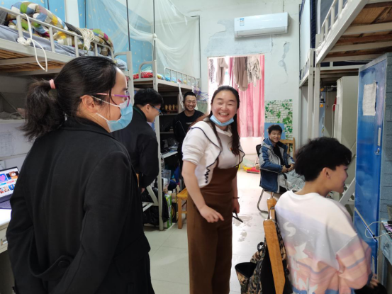 寝室走访过程中,支部党员热情和学生交谈,亲如一家人。