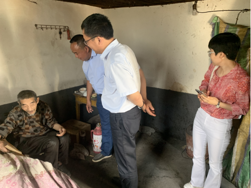 在老村支书唐学典家中,叶永涛详细了解他担当村支书期间傅家坪村的情况,并请他对驻村工作队的工作提出意见建议。