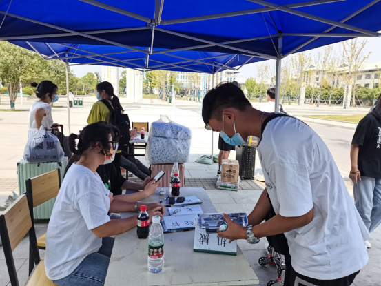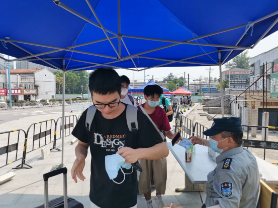 学生们一到校门口,工作人员按照要求立即上前查验学生健康码、行程码,双码合格后方可进入入校通道。接着,工作人员对学生进行全身消毒,让学生换掉校外佩戴的口罩,戴上学校免费发放的新口罩,尔后进入测温通道,体温正常,方可进入校门。随后,各系工作人员对学生进行扫码登记。学生到达寝室后,在指定位置采集核酸。