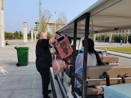 学生新学期返校,恰遇寝室搬迁。为了帮助学生快速便捷到达指定寝室,减少接触风险,学校安排了摆渡车帮助学生运送行李,各系教师自觉成立志愿小组,运用三轮车、摩托车帮助学生搬运行李,学校后勤处租借了云梯帮助高楼层学生运送行李,教职工全员上阵,保证了学生搬迁工作快速有序顺利进行。学生报到的两天时间内,全校教职工共计200余名教职工参与到学生寝室搬迁工作。