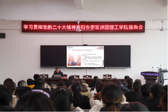 宣讲报告主题鲜明、内涵丰富、逻辑严密、思想深邃。与会人员纷纷表示,将以此次报告会为契机,切实把思想和行动统一到党的二十大精神上来,牢记“为党育人为国育才”的初心使命,以高度的政治自觉抓好学习宣传和贯彻落实,把理论学习成果转化为干事创业的精气神、担当作为的新干劲,以更加饱满的热情、更加昂扬的斗志、更加务实的作风,扎实工作、锐意进取,奋力谱写新时代理工学院发展的新篇章。