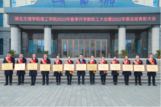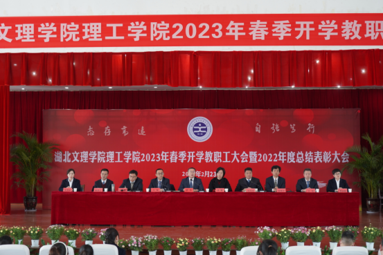 (宣传部 尚秀英)2月23日下午,学校在大学生活动中心三楼报告厅召开2023年春季开学教职工大会暨2022年度总结表彰大会。会议总结回顾了2022年工作,表彰了一批工作突出的先进单位和先进个人,安排部署了2023年重点工作任务,传达了全省教育工作会议精神,动员全体教职员工坚定信心、踔厉奋发、笃行不怠,以昂扬斗志、实干精神扎扎实实做好各项工作,开创理工学院高质量发展新局面。汉江国有资本投资集团有限公司总经理助理、湖北文理学院理工学院董事长胡钧出席会议并讲话。