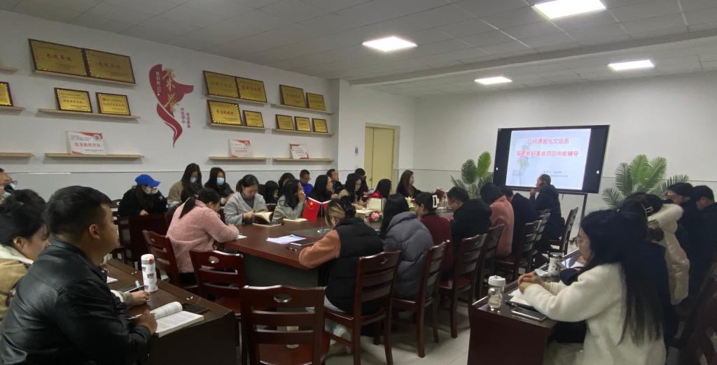 3月16日下午,公共课部与文法系邀请国家社科基金项目主持人高志明教授作科研能力培训讲座,该系全体教师与会。