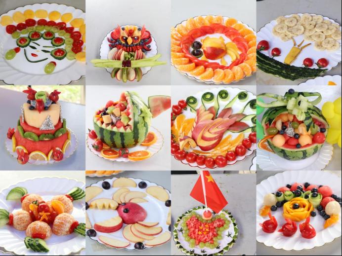 随着一声令下,同学们马上开始行动,有切西瓜的、有剥香蕉的、有洗蓝莓的……伴随着欢声笑语,经过大家的精雕细琢,一盘盘造型精美、果香四溢的水果拼盘“新鲜出炉” 。每一种水果,都有属于自己的颜色和心情;每一件作品,都有属于自己的创意和价值。