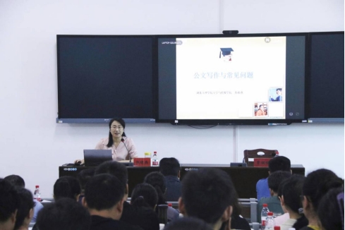 湖北文理学院文学与传媒学院副教授陈晓燕结合丰富的实例详细讲解了日常办公常用的通知、报告、请示、函等公文写作与常见问题,使参加培训的老师受益匪浅。
