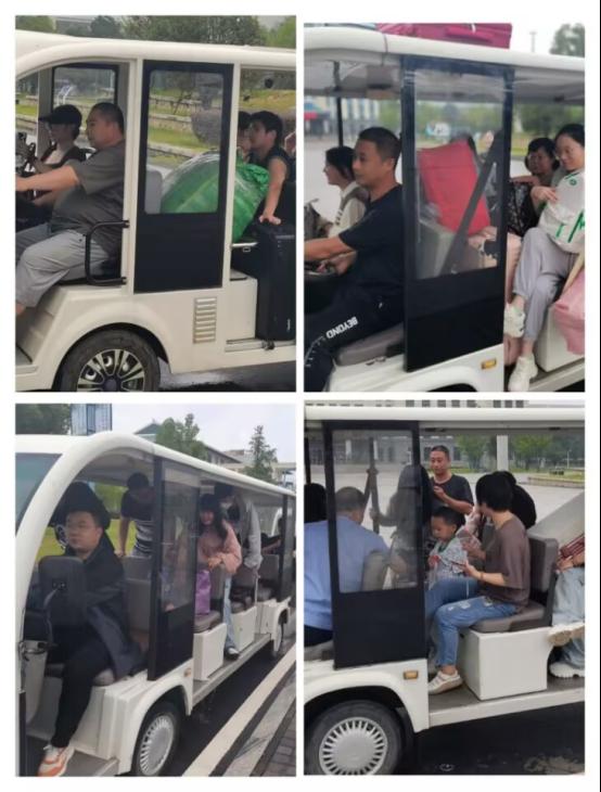 摆渡车来回穿梭,帮助新生拖运行李直达寝室。