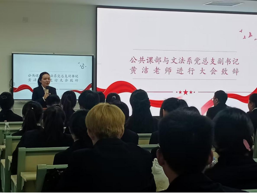会上,文法系党总支副书记黄洁充分肯定了上一届学生会的工作,并对新一届学生会成员表示热烈的欢迎。