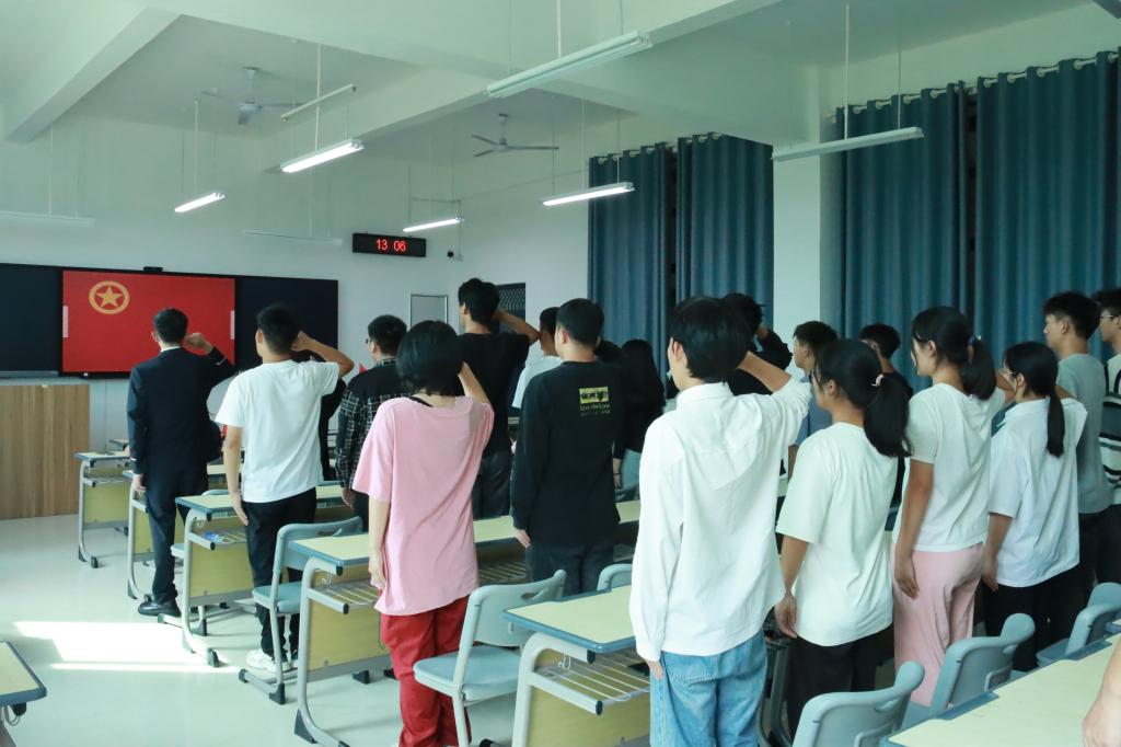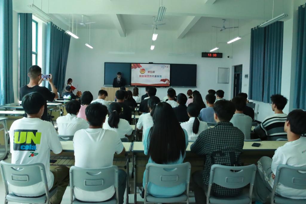 会上宣读了建筑工程系分团委2023年下半年新发展团员名单;各团支书为新团员佩戴党徽;分团委书记覃璇带领新发展团员庄严宣誓。