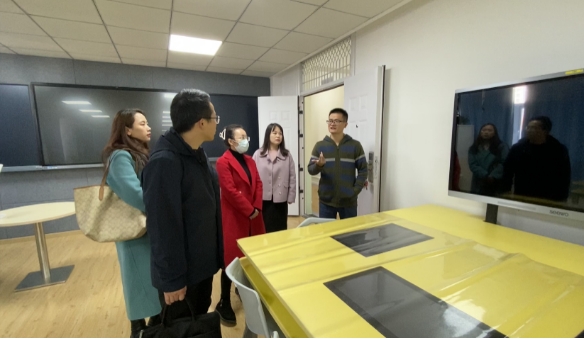 随后,在武昌工学院国际教育学院黄蓉院长带领下,我校教师一行参观了该校教育实训中心中的学生艺术作品展览室、三笔字智能书写教室、手工室、钢琴室等。实训楼梯间的墙面上随处可见学生们的创意画作,为实训楼增添了一抹缤纷的色彩。我校教师纷纷表示该校实训楼功能齐全、内部设施完善、创新点突出,值得学习。