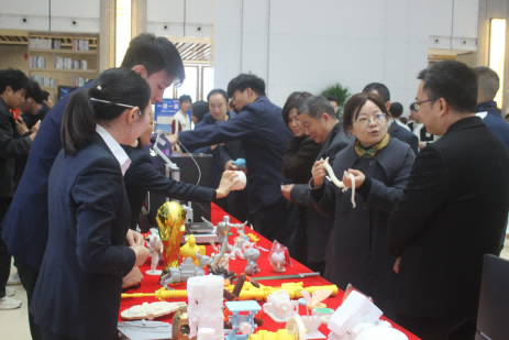各展区亮点纷呈:3D打印区展示的玩具手办、航空发动机、汽车8缸发动机等作品,既有课程实践成果,也有学生创意设计。