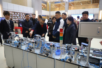(机械学院 丁文文)11月6日,机械与汽车工程学院“智造未来·工创融合”一课一展活动在校图书馆一楼中厅举行。本次活动紧扣国家"新工科"建设战略,聚焦机械工程领域全链条能力培养,通过四大核心模块的沉浸式展示,全面呈现课堂教学与工程实践深度融合的创新成果。襄阳市科协副主席胥国成、襄阳市科技馆馆长王琰璘、襄城区科协主席吴红,副董事长赵乔、校长杨海浪、党委书记叶永涛等领导出席了本次活动开幕式。