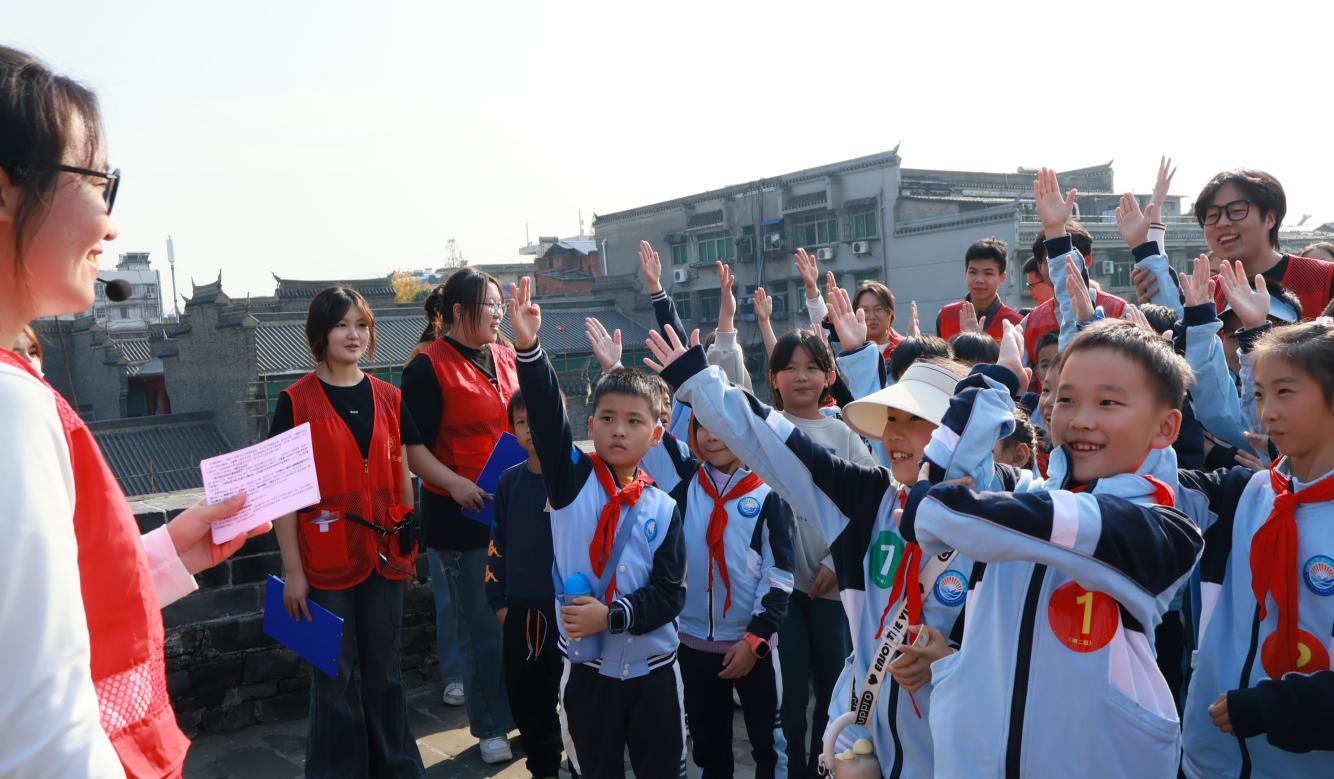活动从临汉门启程,大学生志愿者们与小学生以小组为单位,组成了一支朝气蓬勃的“走襄水”队伍,“大手”坚定地拉起“小手”,一起用脚步丈量襄阳古城。沿着巍峨的城墙缓步前行,志愿者化身“历史故事家”,用生动有趣的语言,为孩子们讲述着一砖一瓦背后的故事,拥有2800多年历史的沉默古城在志愿者的讲述中生动起来,伴随着一个个脚印、一段段讲述,大家的城市认同感、家乡自豪感不断高涨。